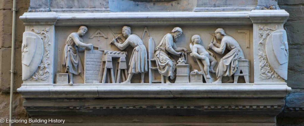 Relief sculpture below a niche on the side of the Church of Orsanmichele in Florence