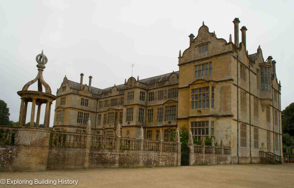 The east court of the house (completed circa 1603) was most likely contemporary with the house, although things may have been moved. For example, the corner pavilions were reduced by a storey sometime around or after 1780. William Arnold’s flair as master mason is evident in the curious mini-temple feature set in the balustrade, topped with a pierced, hollow finial.